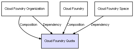 | Cloud Foundry Organization | Cloud Foundry Quota | Dependency | represents a dependency between 2 objects |