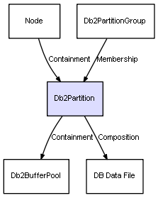 | Db2Partition | DB Data File | Composition | Represents a relation between 2 objects where one is contained within the other, and the included object can not exist without its container. Therefore, when the container is deleted, all its contained object will be automatically removed |