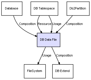 | Db2Partition | DB Data File | Composition | Represents a relation between 2 objects where one is contained within the other, and the included object can not exist without its container. Therefore, when the container is deleted, all its contained object will be automatically removed |