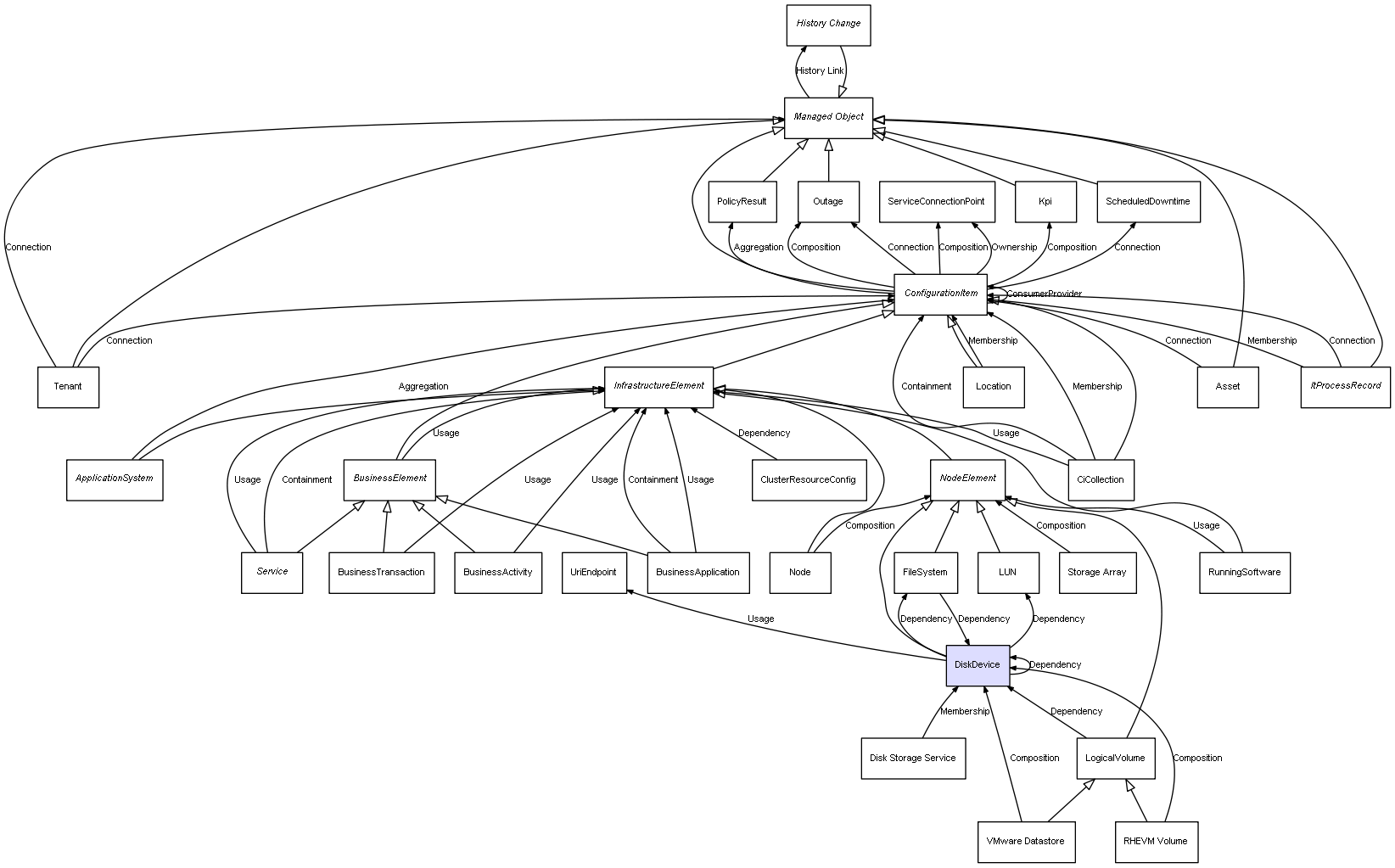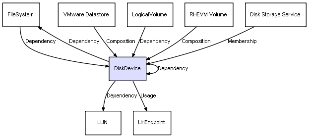 | DiskDevice | LUN | Dependency | represents a dependency between 2 objects |