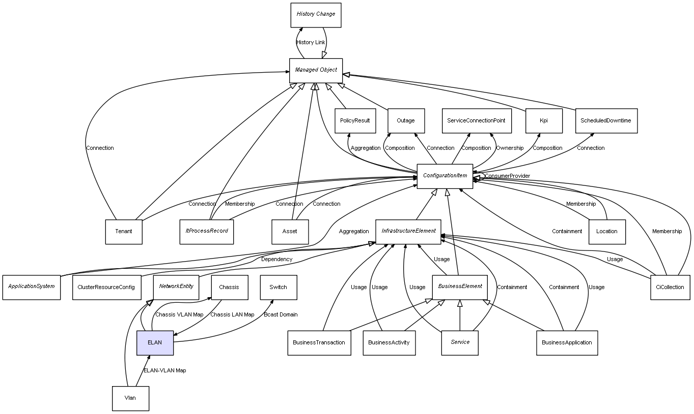 | ConfigurationItem | Outage | Composition | Represents a relation between 2 objects where one is contained within the other, and the included object can not exist without its container. Therefore, when the container is deleted, all its contained object will be automatically removed |