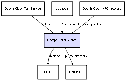 | Relations defined for Google Cloud Subnet | |||
