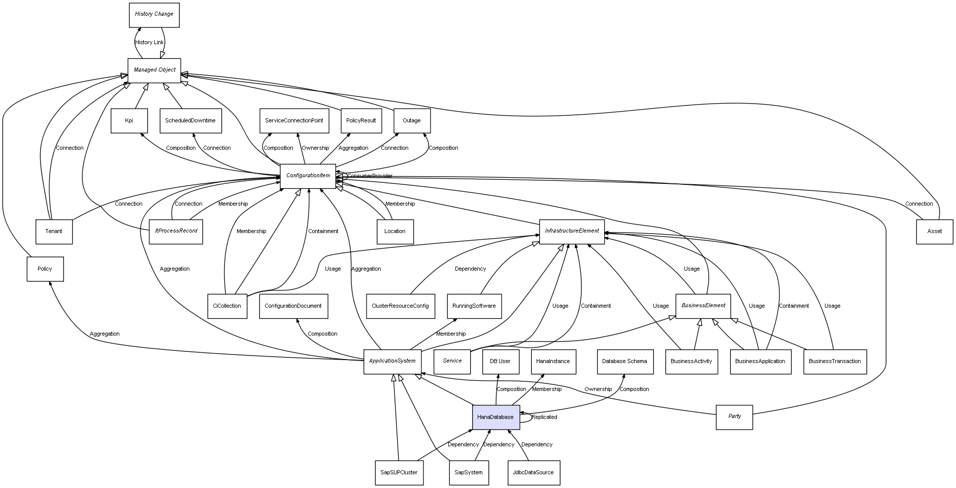 | SapSystem | HanaDatabase | Dependency | represents a dependency between 2 objects |