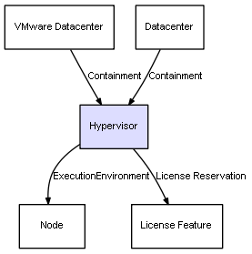 | Description | Base class for different kinds of hypervisors (software that allows to host virtual machines)Represents the virtualization service provided by the Hypervisor, its properties and health. The Hypervisor is the link object between the virtual machine (a Node) and the physical host (a Node). |