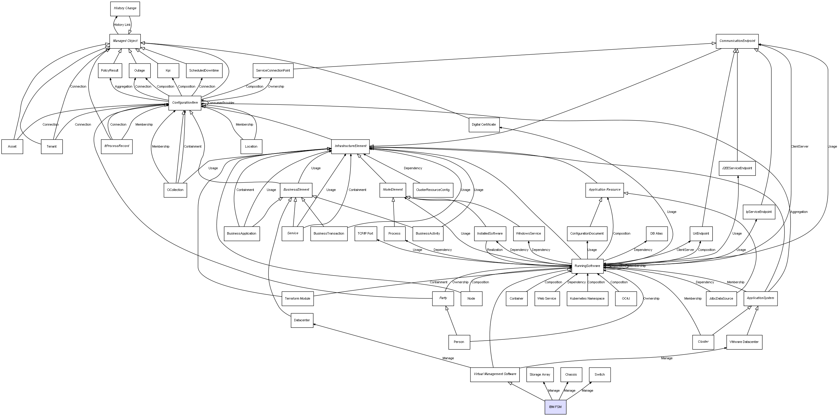 Combined inheritance and relation diagram for IBM FSM