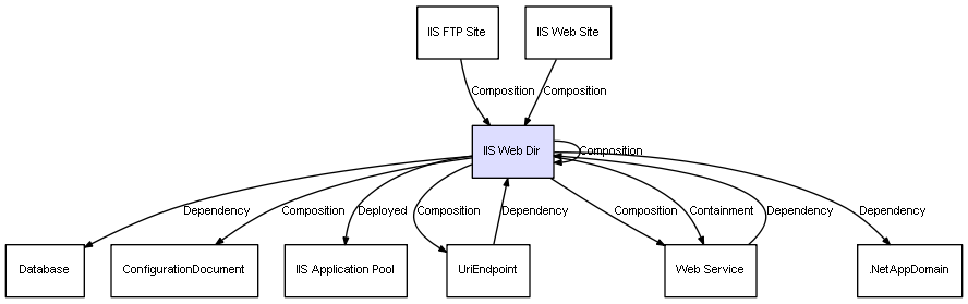 | IIS Web Dir | Database | Dependency | represents a dependency between 2 objects |