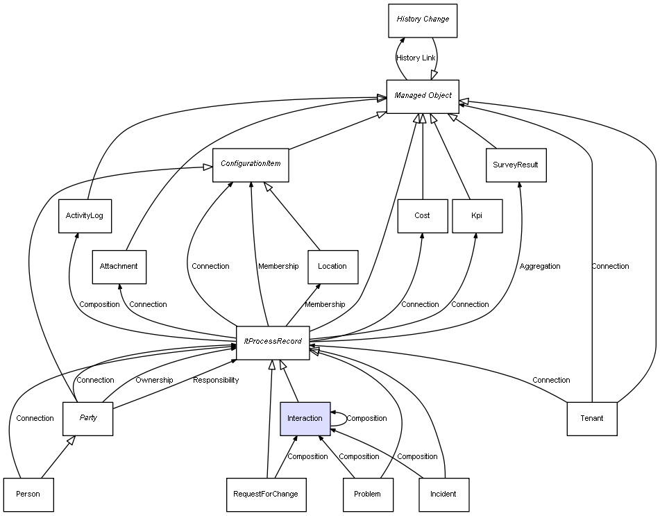 | Description | An Interaction describes the converstion between the help desk and a user.An interaction does not live on its own, it is always registered in the context of another object (e.g. Problem, Incident, Request For Change). |