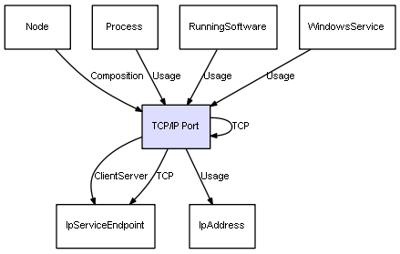 | TCP/IP Port | IpServiceEndpoint | ClientServer | The Client-Server relationship indicates the two CIs communicate with each other where one CI acts as a client while the other acts a server. |