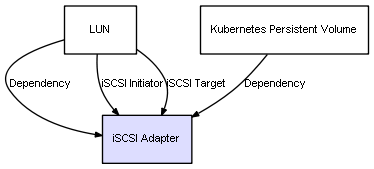 | Kubernetes Persistent Volume | iSCSI Adapter | Dependency | represents a dependency between 2 objects |