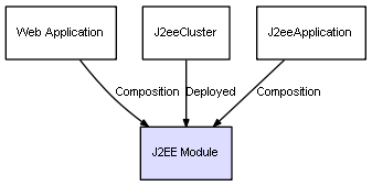 | J2eeApplication | J2EE Module | Composition | Represents a relation between 2 objects where one is contained within the other, and the included object can not exist without its container. Therefore, when the container is deleted, all its contained object will be automatically removed |