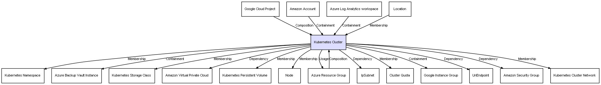 | Kubernetes Cluster | IpSubnet | Dependency | represents a dependency between 2 objects |