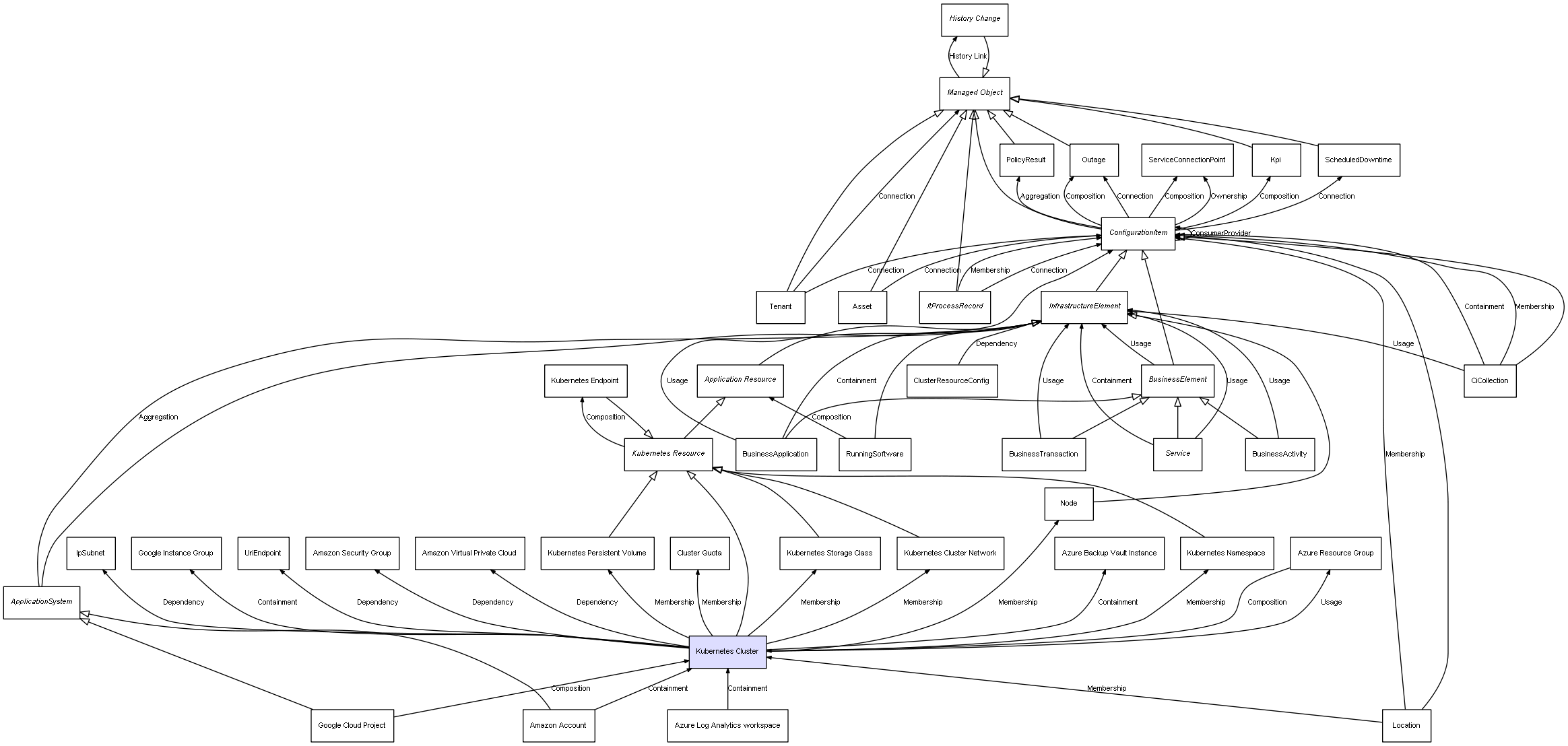 Combined inheritance and relation diagram for Kubernetes Cluster