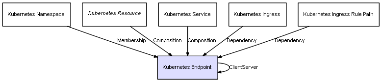 | Kubernetes Ingress | Kubernetes Endpoint | Dependency | represents a dependency between 2 objects |