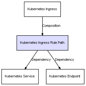 | Kubernetes Ingress Rule Path | Kubernetes Service | Dependency | represents a dependency between 2 objects |