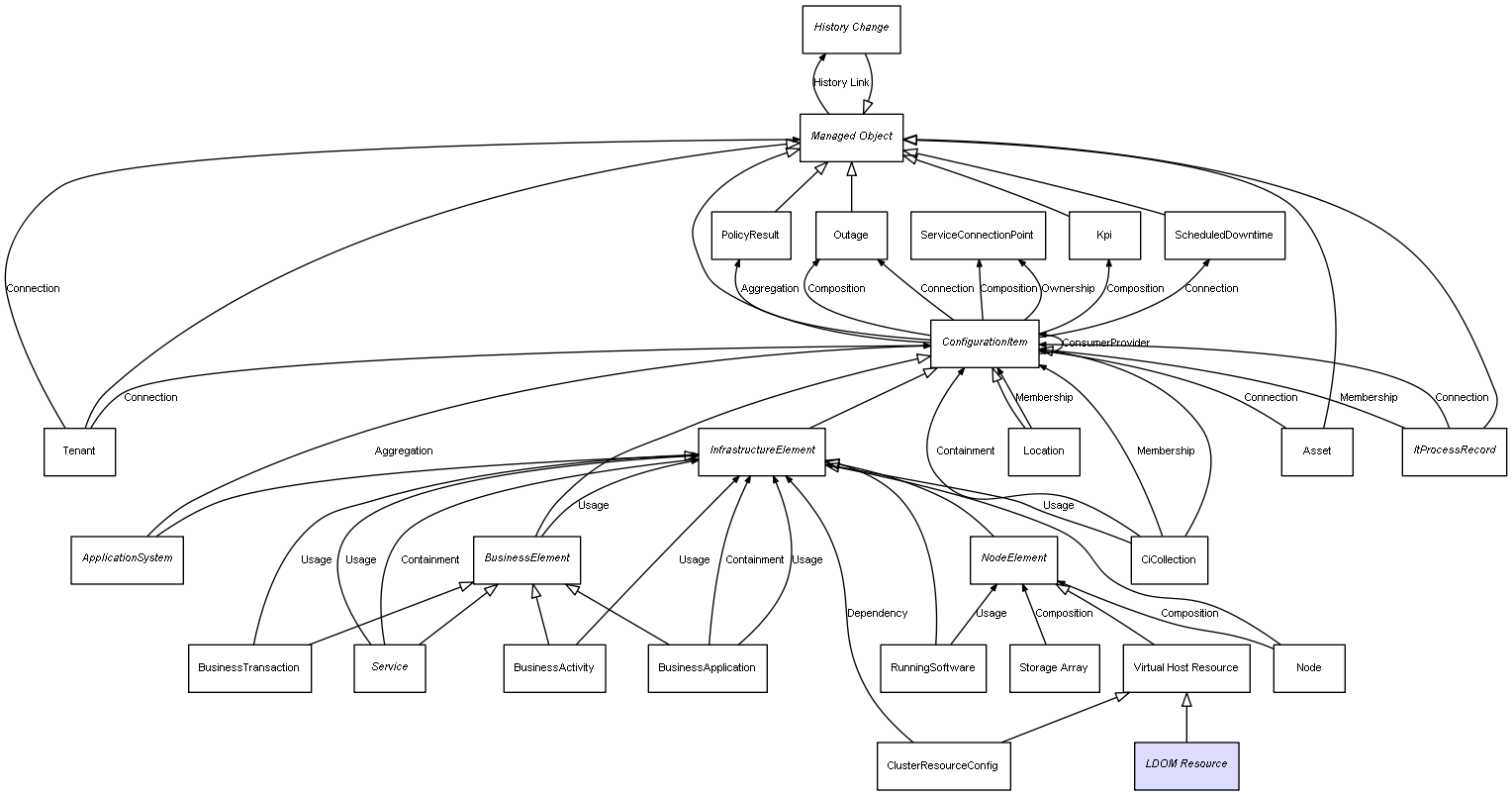 Combined inheritance and relation diagram for LDOM Resource