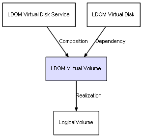 | LDOM Virtual Disk | LDOM Virtual Volume | Dependency | represents a dependency between 2 objects |