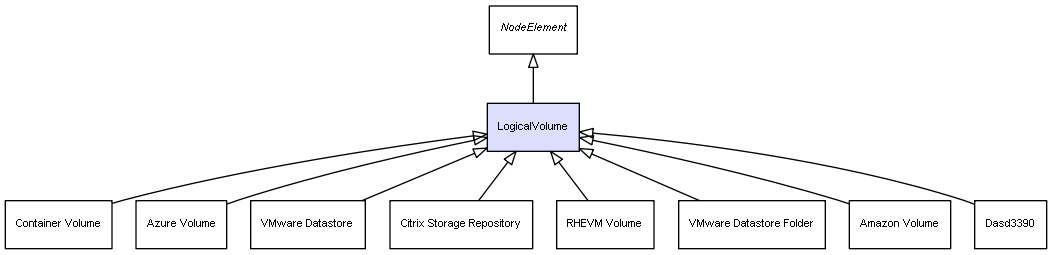 | VMware Template | LogicalVolume | Composition | Represents a relation between 2 objects where one is contained within the other, and the included object can not exist without its container. Therefore, when the container is deleted, all its contained object will be automatically removed |
