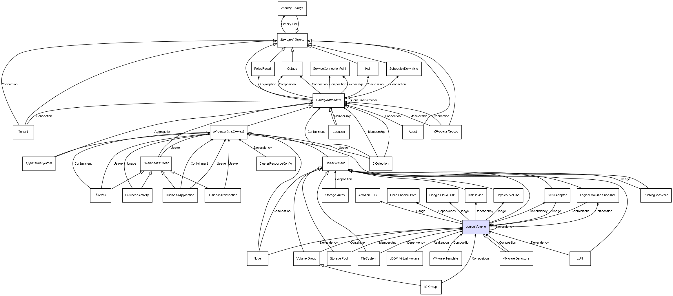 | LUN | LogicalVolume | Dependency | represents a dependency between 2 objects |