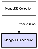 | MongoDB Collection | MongoDB Procedure | Composition | Represents a relation between 2 objects where one is contained within the other, and the included object can not exist without its container. Therefore, when the container is deleted, all its contained object will be automatically removed |