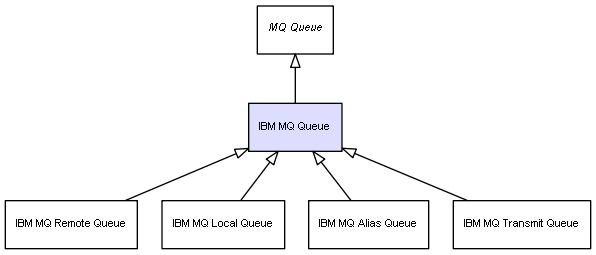 Combined inheritance and relation diagram for IBM MQ Queue