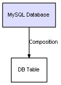 | MySQL Database | DB Table | Composition | Represents a relation between 2 objects where one is contained within the other, and the included object can not exist without its container. Therefore, when the container is deleted, all its contained object will be automatically removed |