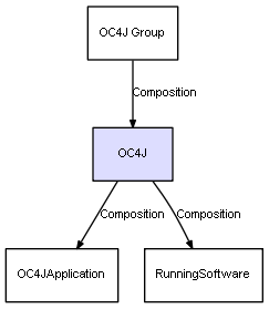| OC4J | RunningSoftware | Composition | Represents a relation between 2 objects where one is contained within the other, and the included object can not exist without its container. Therefore, when the container is deleted, all its contained object will be automatically removed |