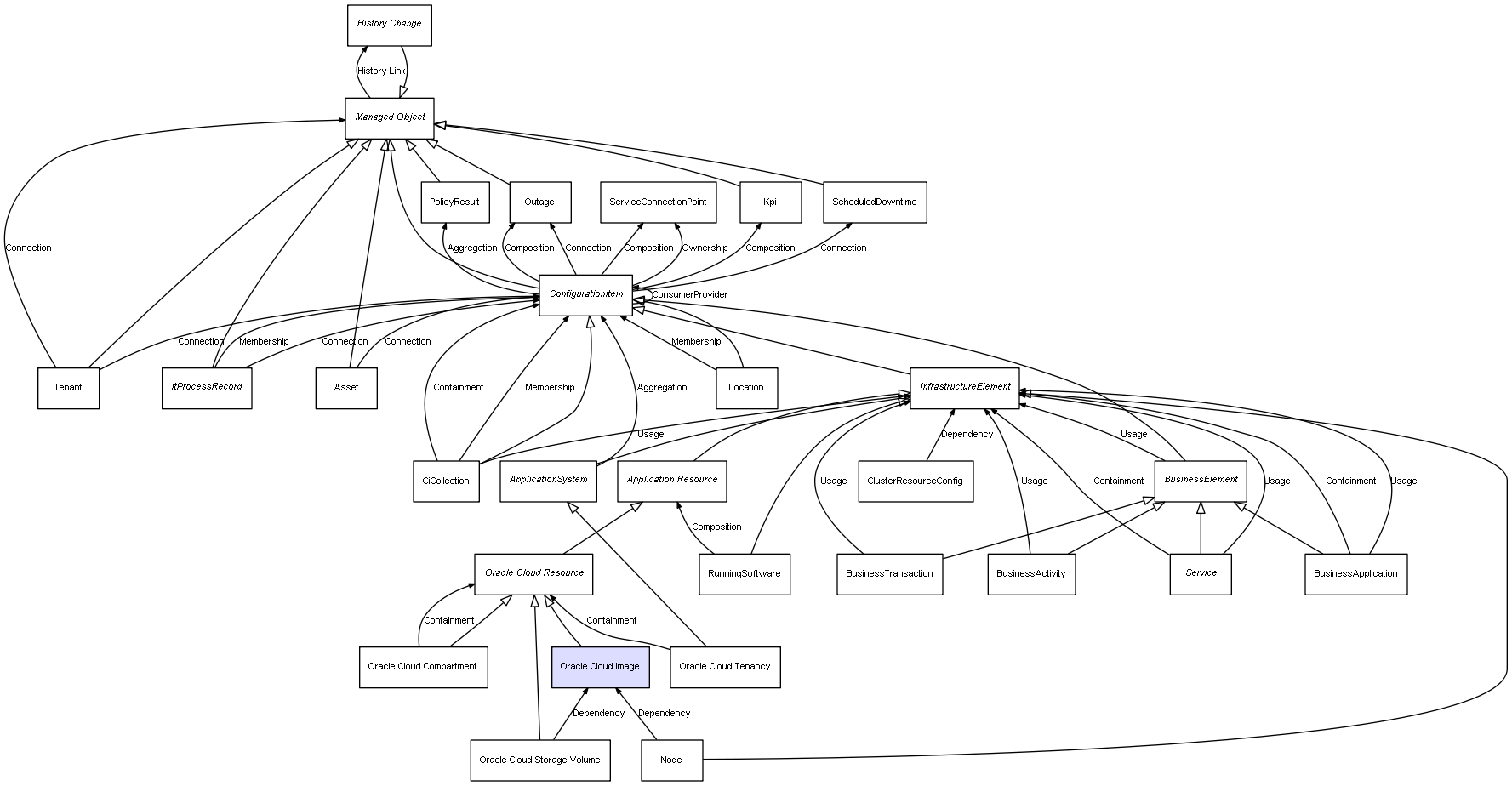 Combined inheritance and relation diagram for Oracle Cloud Image