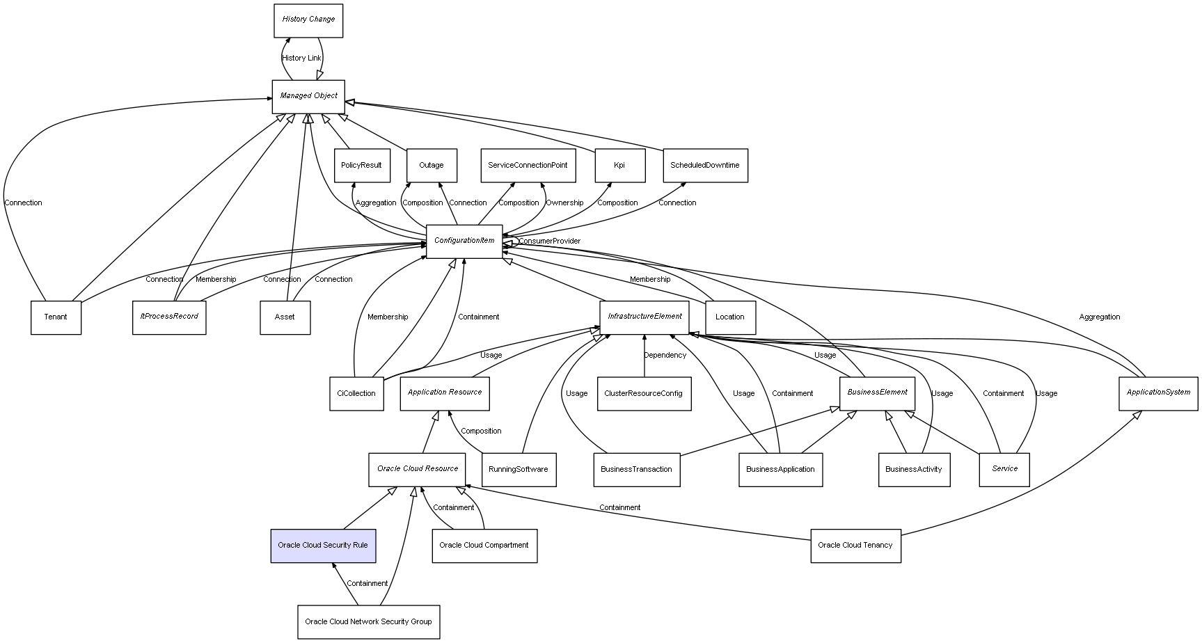 Combined inheritance and relation diagram for Oracle Cloud Security Rule