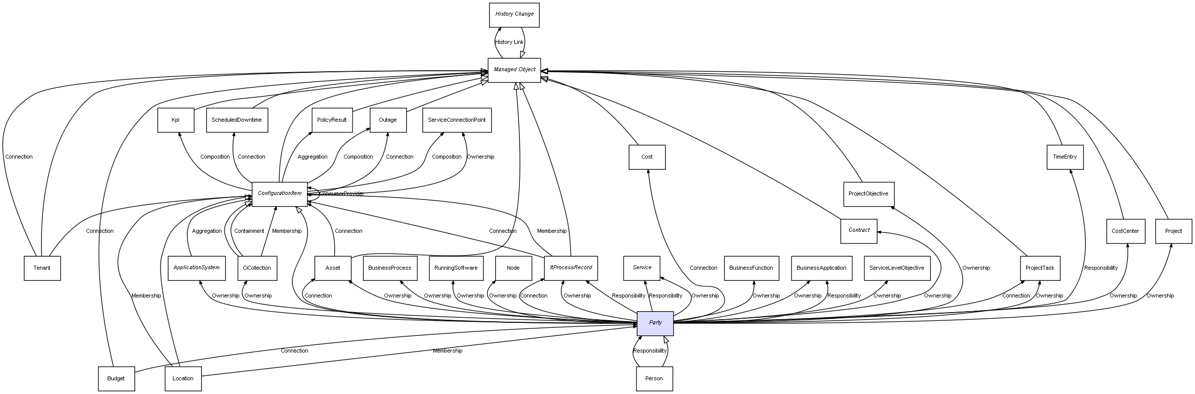 | ConfigurationItem | Outage | Composition | Represents a relation between 2 objects where one is contained within the other, and the included object can not exist without its container. Therefore, when the container is deleted, all its contained object will be automatically removed |