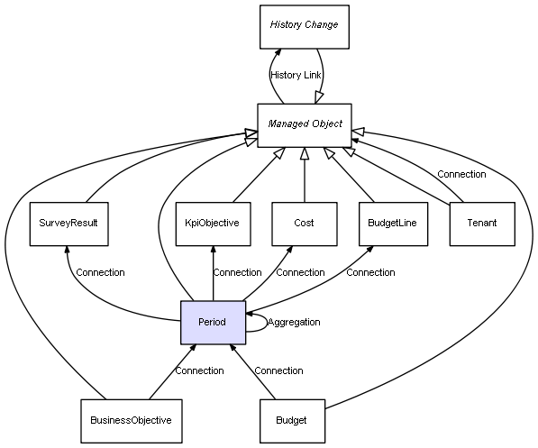 | Description | A period represents a period of time. Items such as IT Financial or process metrics that are attached to a period mean that their values are measured for that period.The length of the time period is defined by its periodicity attribute.Periods of greater duration can be made up of smaller duration periods - such as a Quarter containing three months.If data is attached to the child period, that means its data happened during the parent period as well. |