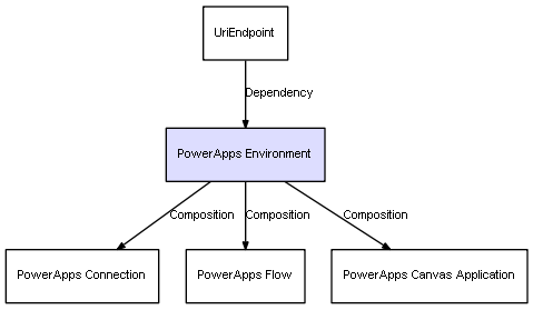 | UriEndpoint | PowerApps Environment | Dependency | represents a dependency between 2 objects |