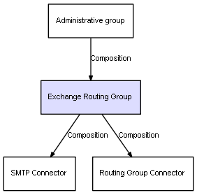 | Administrative group | Exchange Routing Group | Composition | Represents a relation between 2 objects where one is contained within the other, and the included object can not exist without its container. Therefore, when the container is deleted, all its contained object will be automatically removed |