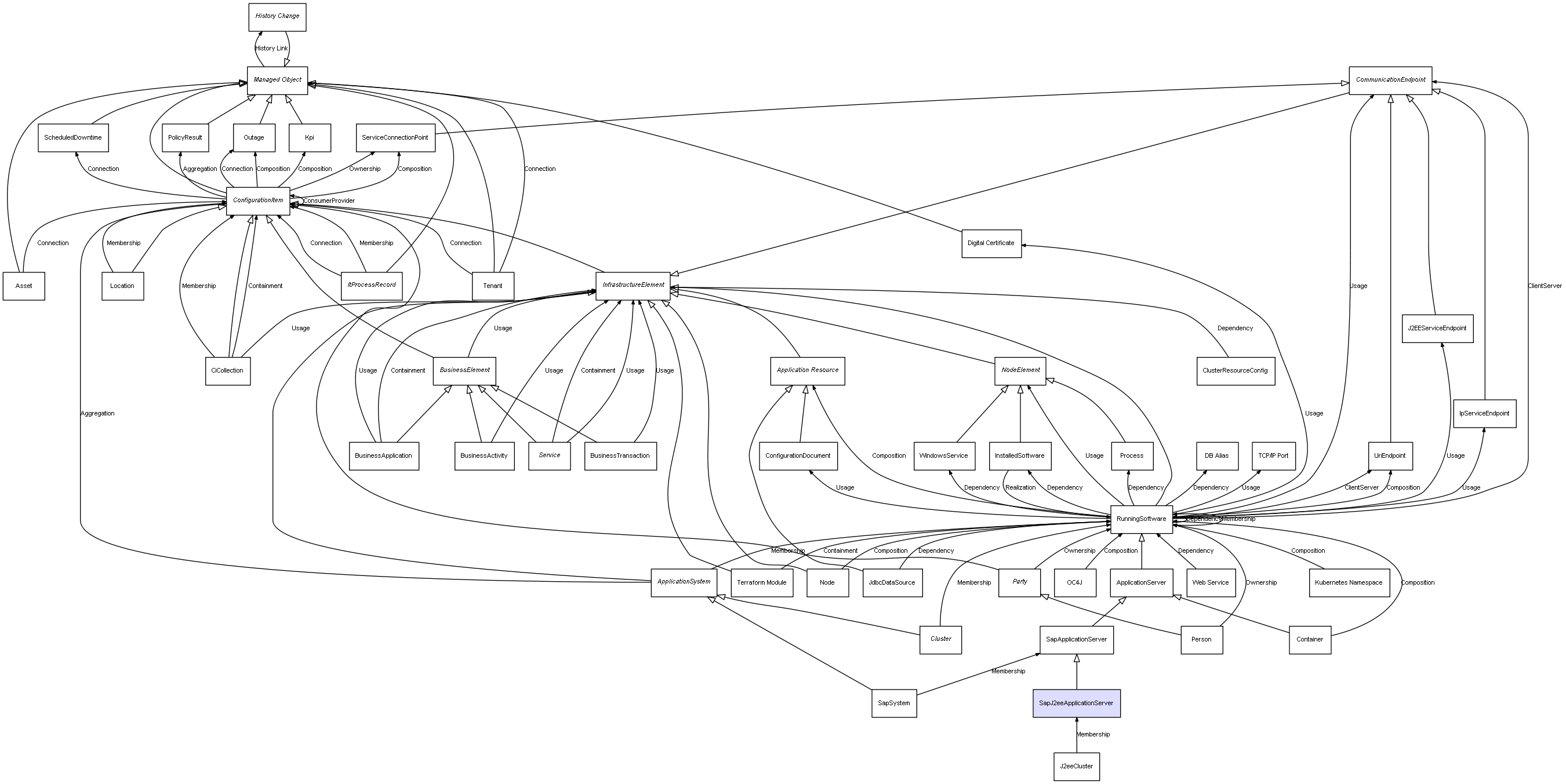 Combined inheritance and relation diagram for SapJ2eeApplicationServer