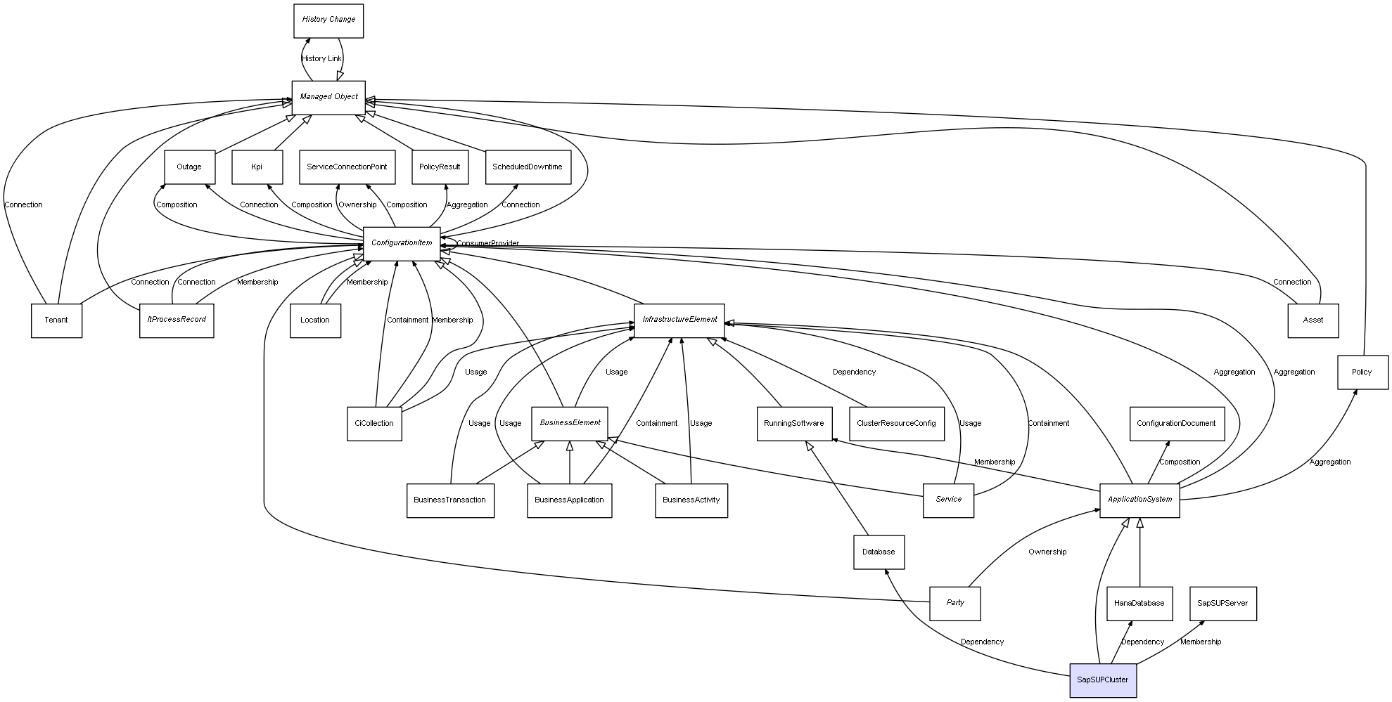 | SapSUPCluster | HanaDatabase | Dependency | represents a dependency between 2 objects |
