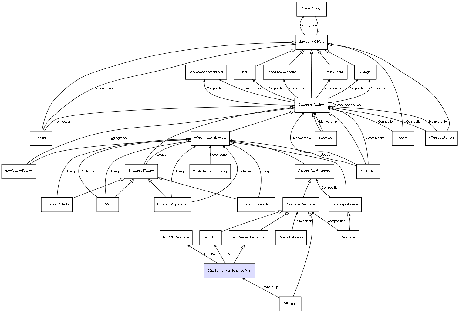 Combined inheritance and relation diagram for SQL Server Maintenance Plan