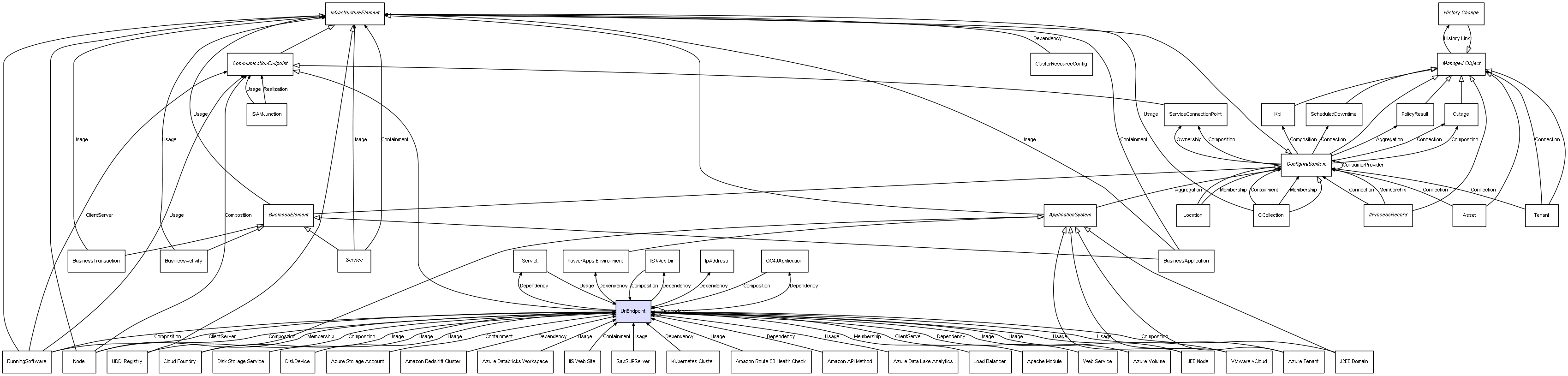 | Node | CommunicationEndpoint | Composition | Represents a relation between 2 objects where one is contained within the other, and the included object can not exist without its container. Therefore, when the container is deleted, all its contained object will be automatically removed |