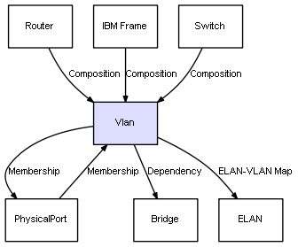 | Vlan | Bridge | Dependency | represents a dependency between 2 objects |