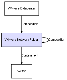 | VMware Network Folder | VMware Network Folder | Composition | Represents a relation between 2 objects where one is contained within the other, and the included object can not exist without its container. Therefore, when the container is deleted, all its contained object will be automatically removed |