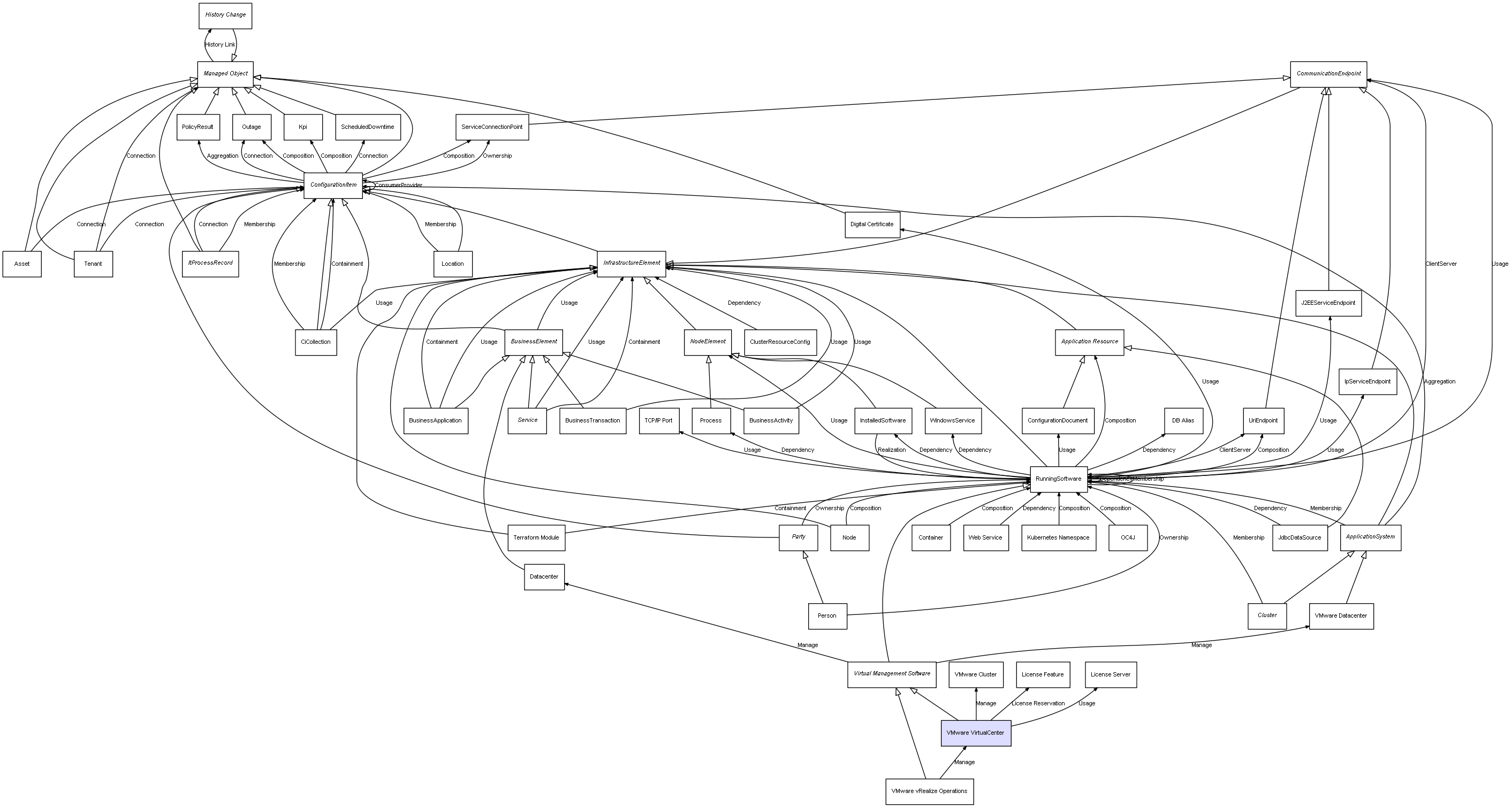 Combined inheritance and relation diagram for VMware VirtualCenter
