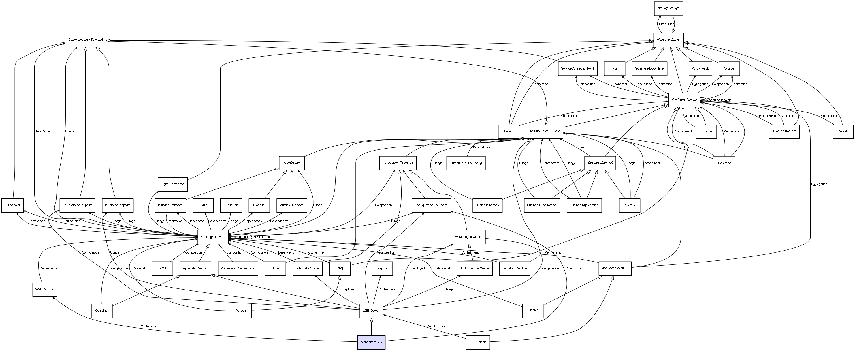 | ConfigurationItem | ServiceConnectionPoint | Composition | Represents a relation between 2 objects where one is contained within the other, and the included object can not exist without its container. Therefore, when the container is deleted, all its contained object will be automatically removed |